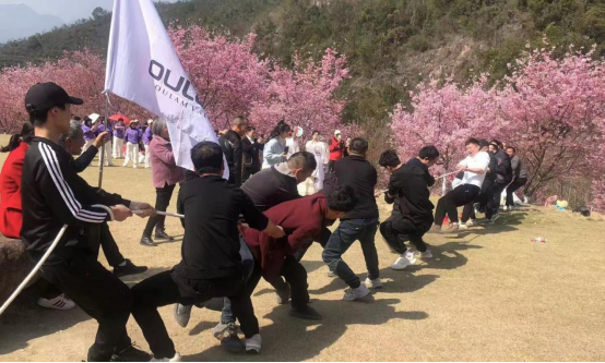 沐浴在春日的暖陽里,大家一起體驗(yàn)拔河工會(huì)游戲,歡聲笑語,掌聲雷動(dòng),氣氛熱烈,大家充分享受著戶外健康生活的無限魅力。在欣賞滿園櫻花的美景的同時(shí)并在櫻花園合影留念,共同見證歐拉姆人的朝氣和不服輸?shù)木?